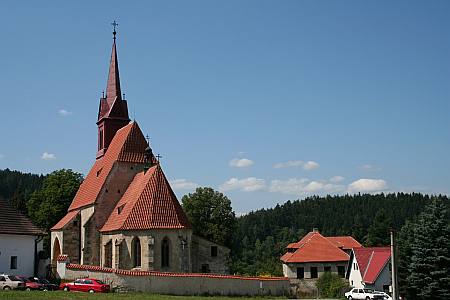 Kostel s okolními lesy - pohled ze silnice / Die Kirche mit den umgebenden Wäldern - Anblick von der Hauptstraße