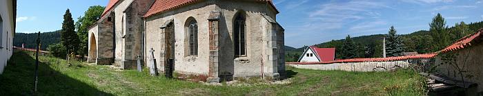 Kostel se høbitovní zdí z východu / Die Kirche mit der Friedhofsmauer vom Osten
